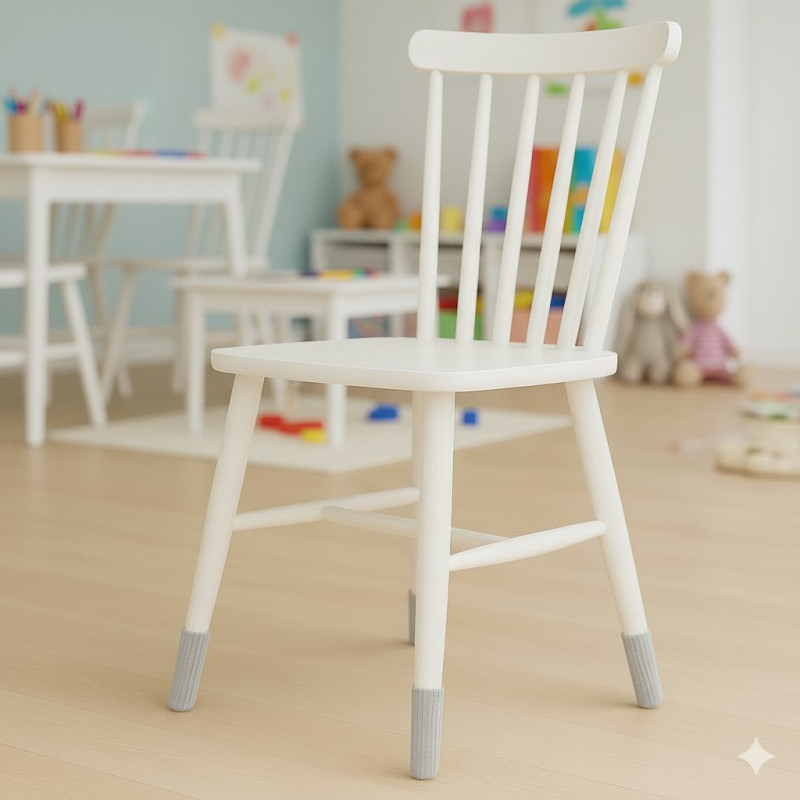 For å få det beste resultatet skal du rengjøre overflaten og påse at skitt, støv og fett er fjernet. Snu møbelet opp ned og tre sokken på benet. Om nødvendig kan sokkene rengjøres på 40 grader og tørkes i tørkemaskin.